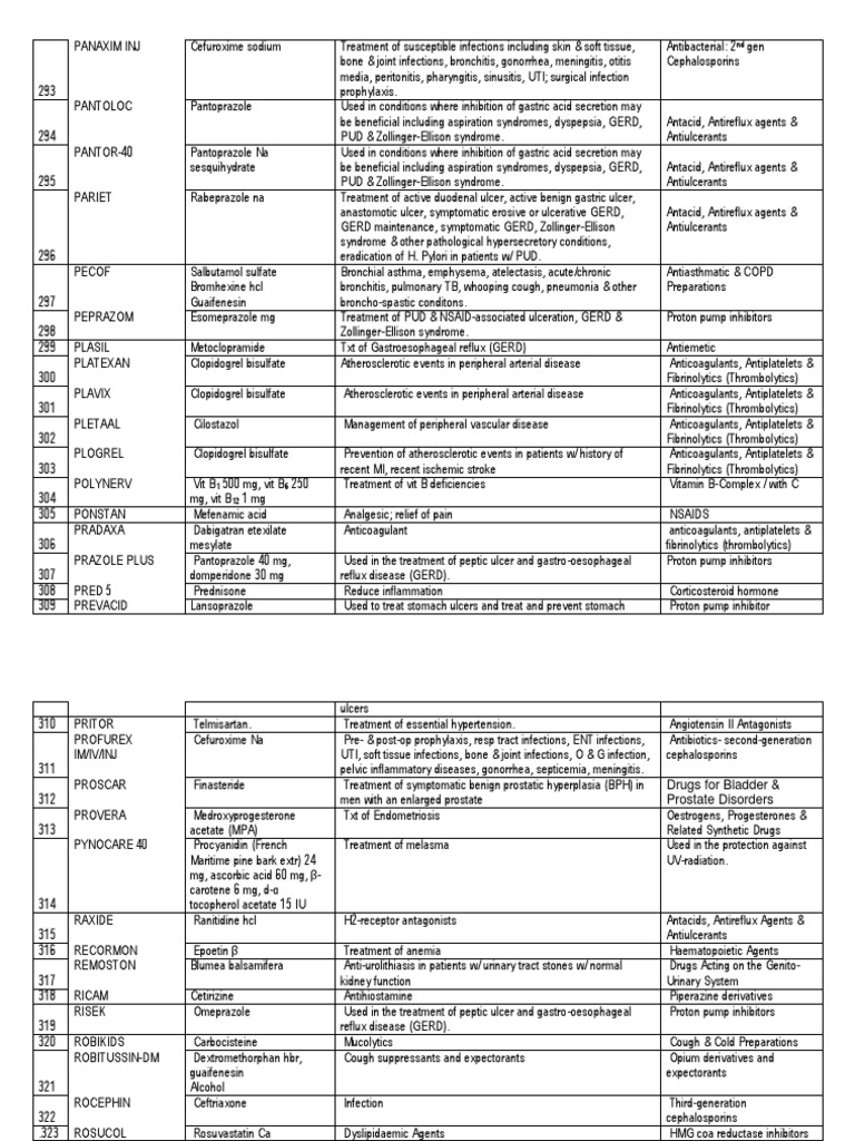 Drug Name, Composition, Therapeutic Indications and Pharmacological